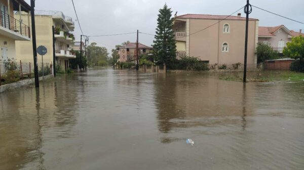 Σε λίμνη έχει μετατραπεί η συνοικία του Αγίου Παύλου στο Μεσολόγγι, μετά τη σφοδρή βροχόπτωση που έπληξε την πόλη για πολλές ώρες.