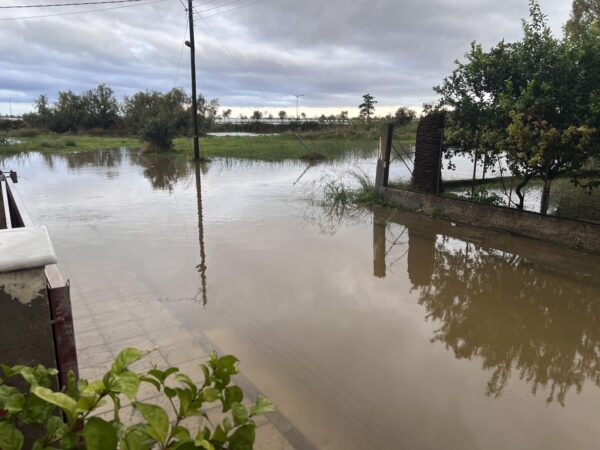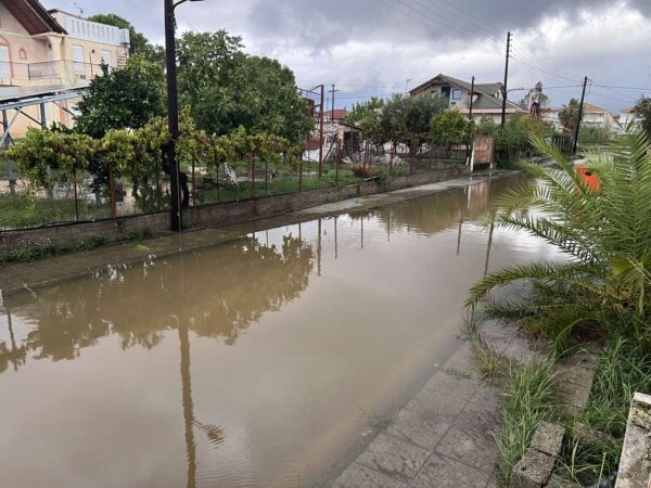 Οι δρόμοι έχουν καλυφθεί πλήρως από το νερό, ενώ σε αρκετά σημεία έχουν πλημμυρίσει αυλές και ισόγεια κατοικιών, με τους κατοίκους να προσπαθούν μόνοι τους να απομακρύνουν τα νερά.