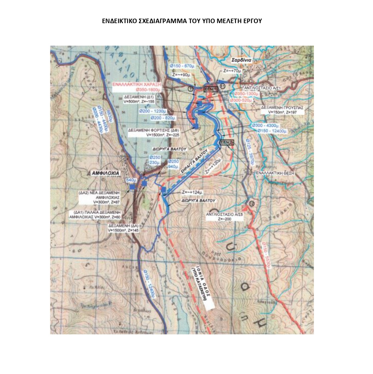 - Κατασκευή εγκατάστασης επεξεργασίας νερού δυναμικότητας 12.000 κυβικών μέτρων ημερησίως, με πρόβλεψη για επέκταση στα 18.000 κυβικά