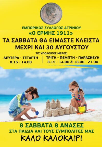 Σε αντίθεση με τον ΣΕΕΔΑ ο Εμπορικός Σύλλογος Αγρινίου “Ο Ερμής” προτείνει στα μέλη τα Σάββατα του Ιουλίου και του Αυγούστου να κλείνουν τα καταστήματά τους.