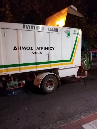 Επιχείρηση απολύμανσης των κάδων απορριμμάτων πραγματοποιεί η Διεύθυνση Καθαριότητας του Δήμου Αγρινίου. Συνεργεία του Δήμου με το ειδικό πλυντήριο κάδων πλένουν και απολυμαίνουν όλους τους κάδους, εσωτερικά και εξωτερικά, με ζεστό νερό και απολυμαντικά υγρά.