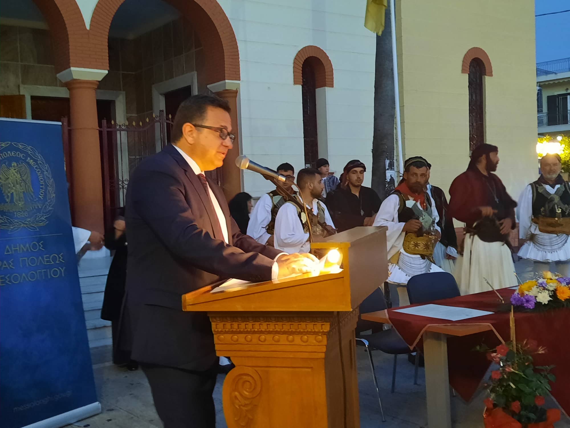 “Συναντιόμαστε σήμερα εδώ στη «μικρή μας Βενετία» την δική μας «μικρή Βενετία» , το γραφικό Αιτωλικό για να ενώσουμε ιστορικές μνήμες. Τις ιστορικές μνήμες μας με το Δήμο Μετεώρων και το χωριό Κλεινοβό και να βαδίσουμε στα μονοπάτια της ιστορίας, του χθες, του σήμερα, αλλά και του αύριο . Είναι πραγματικά τόσες πολλές οι στιγμές, τα γεγονότα, οι αγώνες και οι θυσίες που κάνουν τη χώρα μας μια πραγματική μεγάλη οικογένεια. Γεμάτη αναμνήσεις και συναισθήματα. Μέσα σ ́αυτή τη γεωγραφική και ιστορική οικογένεια θέλουμε εμείς σήμερα να επισημοποιήσουμε μια αδελφική σχέση με το Δήμο Μετεώρων αλλά και το χωριό Κλεινοβό. Μια σχέση που ζυμώνεται για αρκετά χρόνια. Ήρθε η ώρα να την επισημοποιήσουμε . Γιατί μαζί τους μοιραζόμαστε έναν μεγάλο ήρωα. Τον οπλαρχηγό Γρηγόρη Λιακατά. Τον Γρηγόρη Λιακατά, που έδωσε τη ζωή του για να υπερασπιστεί το τελευταίο οχυρό, το νησάκι Ντολμά κατά την επανάσταση των Ελλήνων ενάντια στους Τούρκους. Ο Λιακατάς, αρματολός στο Κλεινοβό, με τους αγώνες του ένωσε άρρηκτα αυτά τα δύο γραφικά μέρη της χώρας μας. Σήμερα μας δίνεται η ευκαιρία να τον τιμήσουμε και να δημιουργήσουμε ισχυρούς δεσμούς ανάμεσα στους δύο Δήμους. Να ανοίξουμε τις πύλες της επικοινωνίας, της συνεργασίας και της κοινής προσπάθειας βελτίωσης της κοινής μας πορείας».
