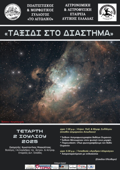 Η επόμενη εκδήλωση του Συλλόγου θα πραγματοποιηθεί την Τετάρτη 2 Ιουλίου και θα είναι αφιερωμένη στο… Διάστημα!