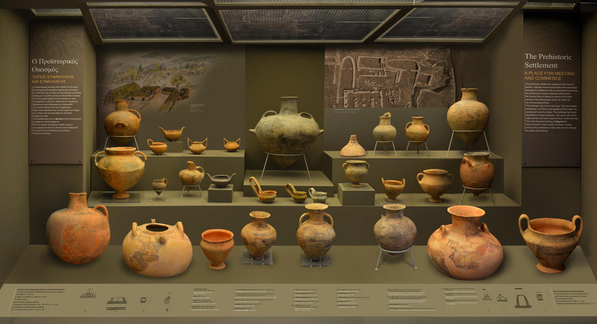 Σημαντικό μέρος των προϊστορικών ευρημάτων (αίθουσα Δ) συνδέεται με τις ανασκαφές που πραγματοποίησε στο νησί ο Γερμανός αρχαιολόγος W. Dörpfeld στις αρχές του 20ου αιώνα. Λίθινα και οστέινα εργαλεία, χειροποίητα αγγεία, ανθρωπόμορφα ειδώλια, λεπίδες και αιχμές πυριτόλιθου ανήκουν στη Νεολιθική εποχή, ενώ οι 33 ταφικοί τύμβοι της Πρωτοελλαδικής ΙΙ περιόδου που αποκάλυψε ο Dörpfeldστη θέση Στενό Νυδριού αντιπροσωπεύονται από πήλινα αγγεία, λίθινες αιχμές, χάλκινα όπλα και εργαλεία, χρυσά και αργυρά κοσμήματα (σε αντίγραφα περιδέραια και ψέλλια, καθώς τα πρωτότυπα εκτίθενται στο Εθνικό Αρχαιολογικό Μουσείο), χάλκινα εγχειρίδια με χρυσές επενδύσεις λαβών κ.α.