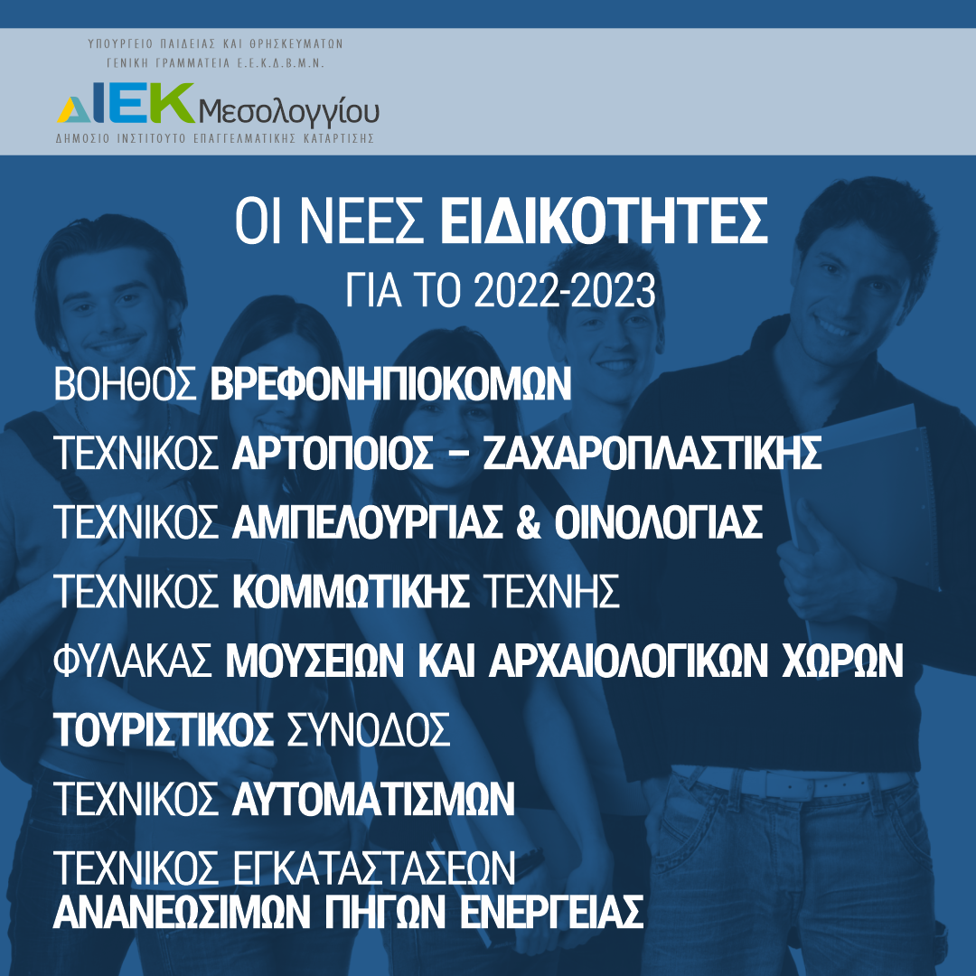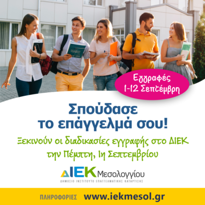 Από την Πέμπτη, 1η Σεπτεμβρίου 2022 ξεκινούν οι διαδικασίες για την εγγραφή καταρτιζόμενων σε ειδικότητες των ΔΙΕΚ του Υπουργείου Παιδείας.
