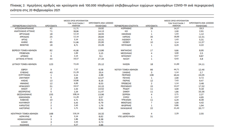 42 νέα κρούσματα της COVID-19 στην Αιτωλοακαρνανία επιβεβαίωσε σήμερα ο ΕΟΔΥ σύμφωνα με την ημερήσια έκθεση επιδημιολογικής επιτήρησης της νόσου.