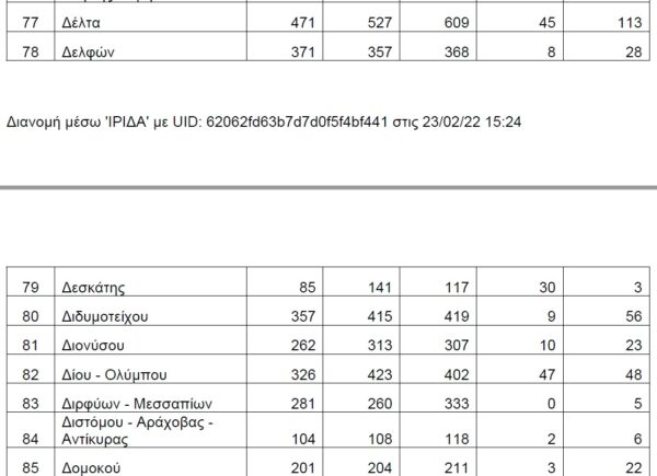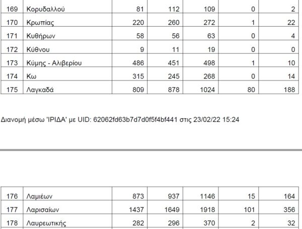 Για πρώτη φορά μετά από δύο χρόνια πανδημίας δίνονται στη δημοσιότητα οι θάνατοι λόγω του κορονοϊού ανά Δήμο σε όλη τη χώρα, καθώς μέχρι σήμερα η καταγραφή γινόταν με βάση τα νοσοκομεία, στα οποία νοσηλεύονταν και τελικά έχαναν τη ζωή τους οι ασθενείς.