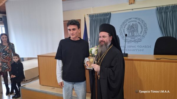 Χθες, αμέσως μετά το πέρας της μαθητικής παρέλασης για την Εθνική Επέτειο της 28ης Οκτωβρίου, ο Σεβασμιώτατος Μητροπολίτης Αιτωλίας και Ακαρνανίας κ.κ. Δαμασκηνός και οι αρχές του τόπου συμμετείχαν στην εκδήλωση που διοργάνωσε ο Δήμος Ιερής Πόλεως Μεσολογγίου στην αίθουσα του Δημοτικού Συμβουλίου, κατά την οποία βραβεύτηκαν οι πρωτεύσαντες μαθητές των Πανελλαδικών Εξετάσεων.