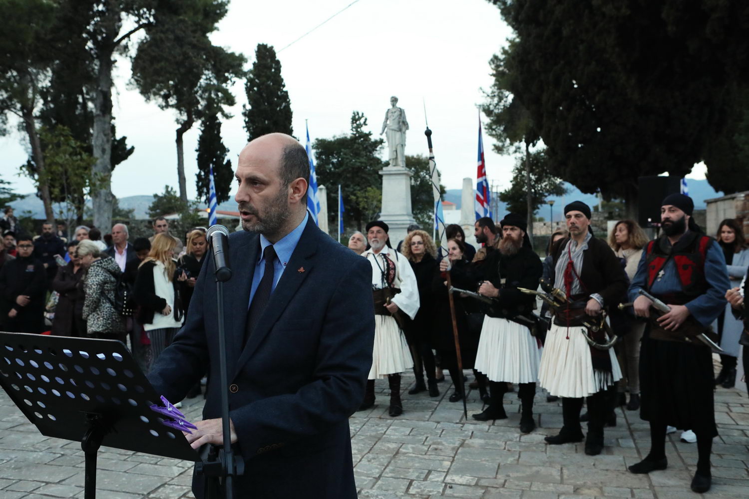 Η εφετινή όμως Μέρα είχε διπλή χαρά. Κι αυτό γιατί πέρα απ’ το καθιερωμένο σεμνό τελετουργικό, υπήρχε κι ένα σπουδαίο νέο. Μια χαρά για το ανεκτίμητο ιστορικό κειμήλιο που οφείλουμε στη σπουδή της Βουλής των Ελλήνων. Στην ανακάλυψη του ξεχασμένου εδώ και 200 χρόνια «Εμβατηρίου της Φρουράς του Μεσολογγίου».