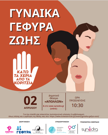 Η ευαισθητοποίηση του κοινού για τα δικαιώματα των γυναικών, σε μια περίοδο που χαρακτηρίστηκε από την ισχυροποίηση του ελληνικού «me too», καθώς και πλήθος γυναικοκτονιών, είναι ο σκοπός ημερίδας με τίτλο «ΓΥΝΑΙΚΑ ΓΕΦΥΡΑ ΖΩΗΣ», που διοργανώνεται το Σάββατο 2 Απριλίου 2022, ώρα 10:30 π.μ. στο Δημοτικό Θέατρο «Απόλλων».