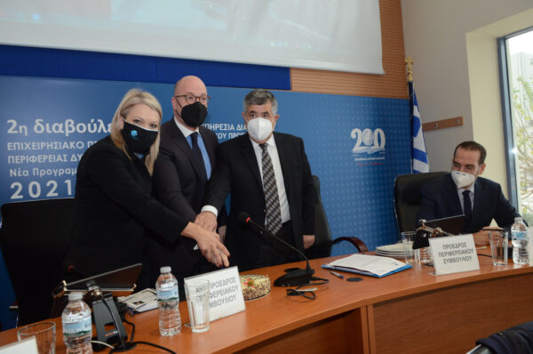 Ο Περιφερειάρχης Δυτικής Ελλάδας, Νεκτάριος Φαρμάκης, αφού ευχαρίστησε τον απερχόμενο Πρόεδρο, Τάκη Παπαδόπουλο και τον απερχόμενο Αντιπρόεδρο, Δημήτρη Δριβίλα, σημειώνοντας πως ανταποκρίθηκαν εξαιρετικά στα καθήκοντά τους και μάλιστα, υπό τις πολύ ιδιαίτερες και αντίξοες συνθήκες που δημιούργησε η πανδημία, ευχήθηκε καλή επιτυχία στο έργο του νέου προεδρείου, κάνοντας λόγο για μία δυναμική και αισιόδοξη διαδικασία. «Κάπου διάβασα ότι αυτός που διακονεί την πολιτική, συνομιλεί με την ιστορία. Και επειδή αυτό είναι κάτι που το πιστεύω βαθιά, γνωρίζω ότι ο τρόπος που θα χειριστείτε τις ευθύνες που αναλαμβάνετε, ισοδυναμεί με το αποτύπωμα που θα αφήσει το Περιφερειακό μας Συμβούλιο στο σύνολο της κοινωνίας που εκπροσωπούμε. Εύχομαι και πιστεύω πως αυτό το αποτύπωμα θα συνεχίσει να είναι θετικό» ανέφερε ο Περιφερειάρχης.