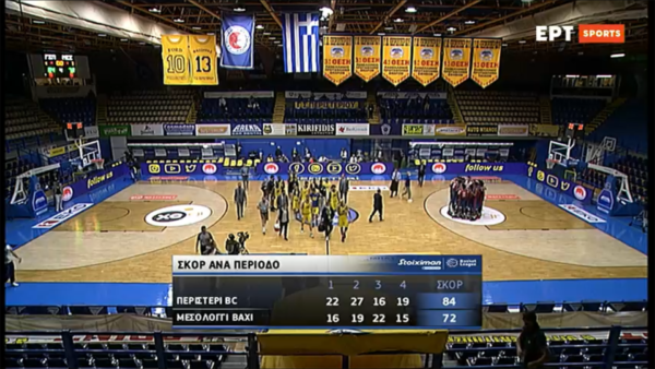 Η ομάδα του Μεσολογγίου κατάφερε να ανατρέψει μια διαφορά 18 πόντων και στο ξεκίνημα του τελευταίου πενταλέπτου την “έριξε” στους 2 πόντους, χωρίς όμως ειδικά στο τελευταίο πεντάλεπτο η ομάδα δεν μπόρεσε να κρατηθεί στον ίδιο ρυθμό και έτσι το “έμπειρο” σύνολο του Περιστερίου κατάφερε να φθάσει στην επιτυχία.