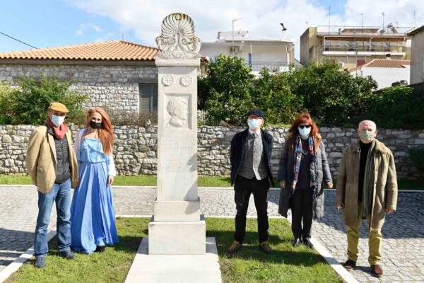 Μνημείο Λόρδου Βύρωνα: Εδώ υπήρχε η οικία του προκρίτου Χρήστου Καψάλη, στην οποία έμεινε ο ποιητής από 5 Ιανουαρίου έως 19 Απριλίου 1824 και άφησε την τελευταία του πνοή. Ο Χρήστος Καψάλης ανατίναξε την οικία του το βράδυ της Εξόδου στις 10 Απριλίου 1826 μαζί με ανήμπορους και γυναικόπαιδα για να μην πέσουν στα χέρια των Τούρκων. Από αριστερά, Daniel du Lac, Φανή Κουσιπέτκου, Sylvain Tesson, Ροδάνθη Φλώρου, Γιώργος Λύτρας. Photo credits: Thomas Goisque