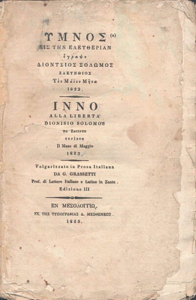 Παρουσίαση της επετειακής έκδοσης του “Ύμνου εις την Ελευθερίαν” του Διονυσίου Σολωμού, εκ τυπογραφίας Δημητρίου Μεσθενέως