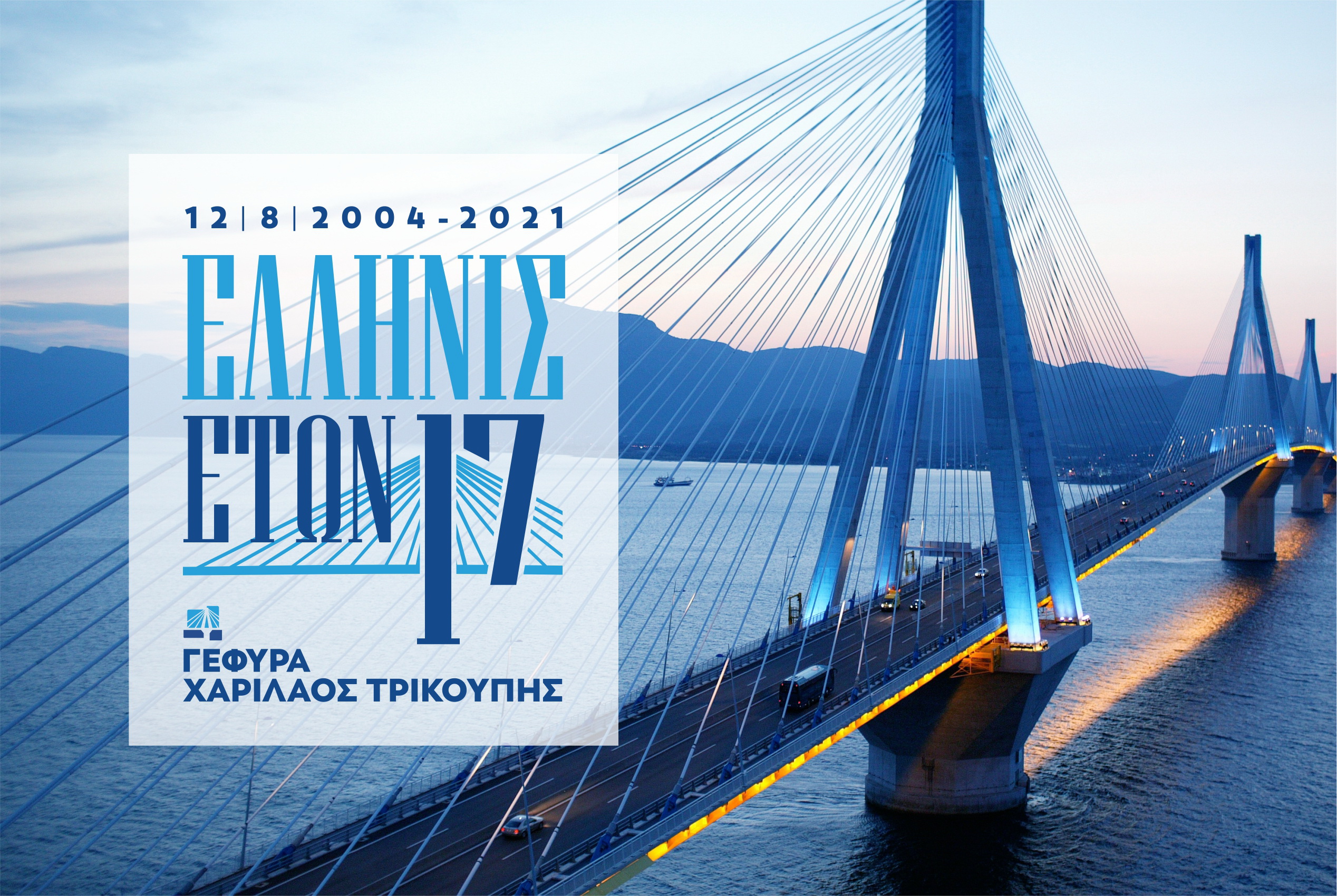 Μία δεκαεπτάχρονη  νεαρή Ελληνίδα βλέπει στον καθρέφτη της φέτος η Γέφυρα Ρίου – Αντιρρίου που γιορτάζει τα 17α γενέθλιά της στις 12 Αυγούστου του 2021.