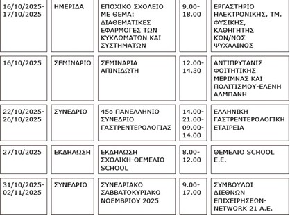 Περισσότερα: http://www.confer.upatras.gr/events.php