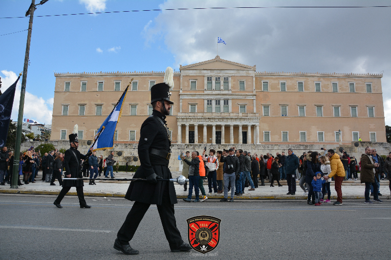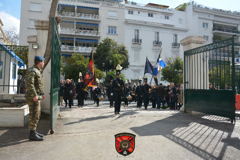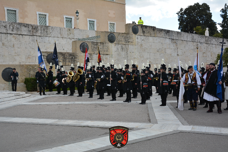 Το τεράστιο Άγημα αρματωμένων, ίσως το μεγαλύτερο ενιαίο άγημα αναβιωτών μέχρι σήμερα, παρέλασε με την Μπάντα του Ιερού Λόχου διανύοντας την οδό Ηρώδου του Αττικού, διήλθε εμπρός από το Προεδρικό Μέγαρο και το Μέγαρο Μαξίμου και εισήλθε παιανίζοντας στο στρατόπεδο της Προεδρικής Φρουράς. Εξ όσων γνωρίζουμε, για πρώτη φορά στην ιστορία της η Προεδρική Φρουρά υποδέχτηκε στους χώρους της Άγημα και Μπάντα πολιτών.
