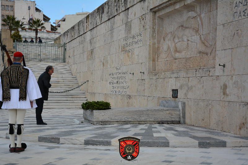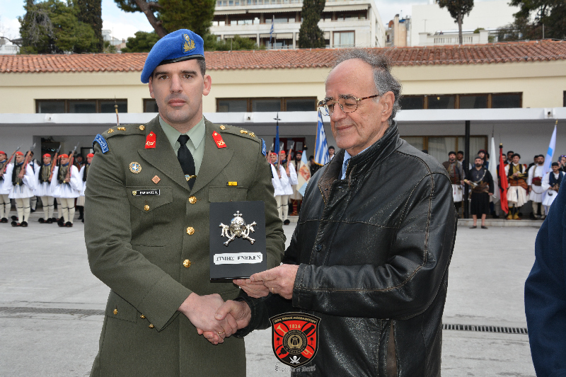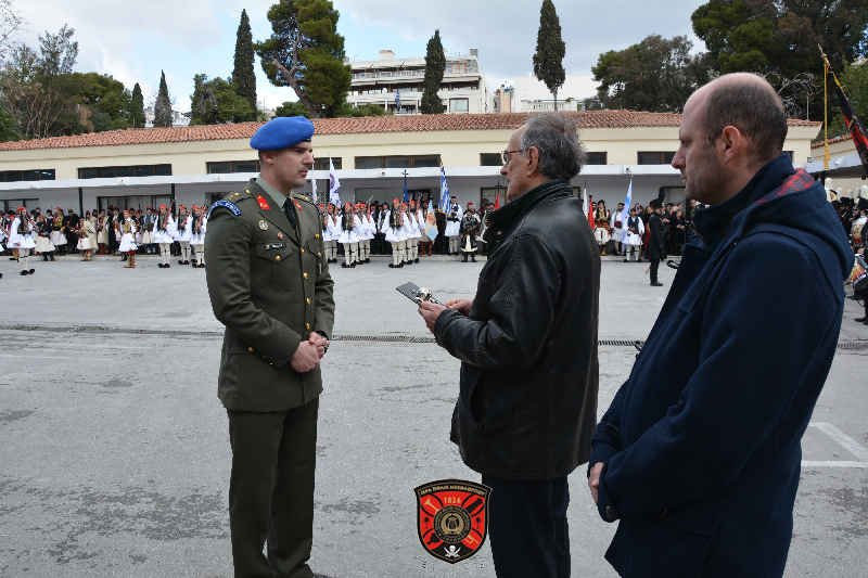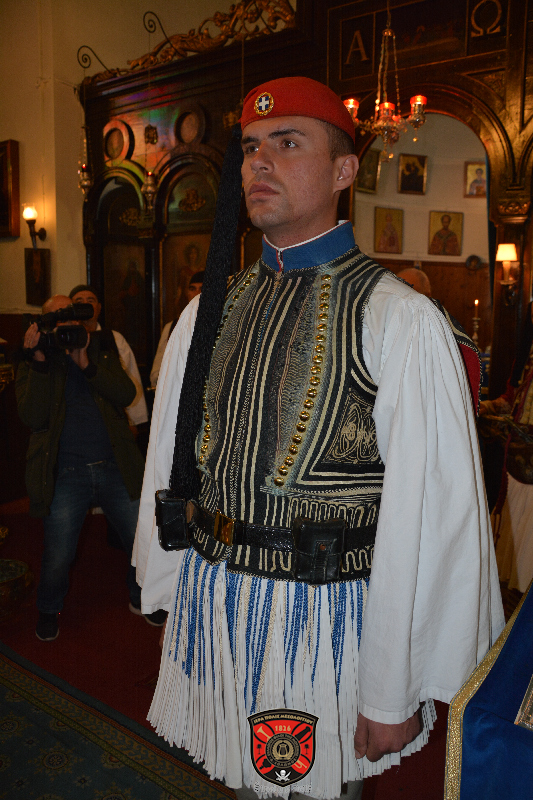 Ο ενθουσιασμός και η συγκίνηση ήταν πρωτόγνωρη για όλους τους συμμετέχοντες, αφού η υποδοχή και η θερμή φιλοξενία των Ευζώνων δεν εκδηλώθηκε απλά με τον στρατιωτικό χαιρετισμό τους καθώς περνούσε η Μπάντα και οι Σημαίες του Αγήματος αλλά κορυφώθηκε με τελετή στην οποία, εκ μέρους της διοίκησης της Προεδρικής Φρουράς, ο Ταγματάρχης Νικόλαος Βαβλέκης καλωσόρισε τον Ιερό Λόχο και τους συλλόγους που συμμετείχαν, επιδίδοντας ένα μοναδικό αναμνηστικό δώρο, εξάρτημα της ενδυμασίας των Ευζώνων.