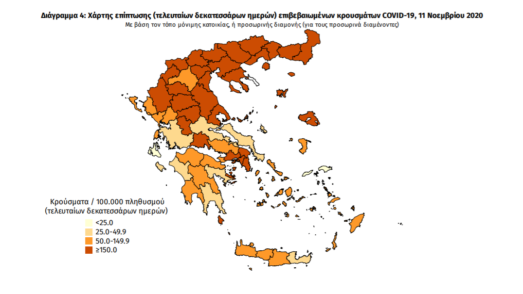 Η γεωγραφική κατανομή των κρουσμάτων της 11ης Νοεμβρίου 2020