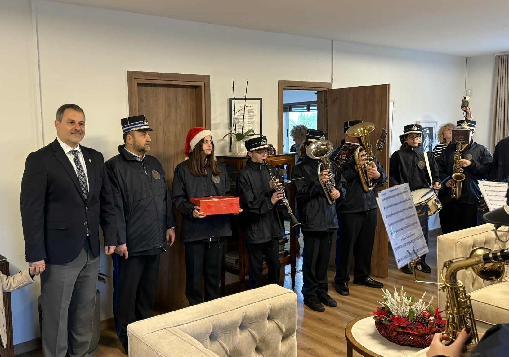 Το πρωί, το Δημαρχείο πλημμύρισε από χριστουγεννιάτικη μουσική, καθώς δύο μουσικά σχήματα επισκέφθηκαν τον Δήμαρχο για να πουν τα κάλαντα.