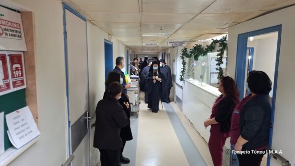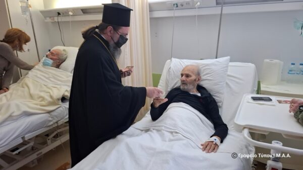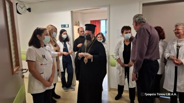 Ο Σεβασμιώτατος επισκέφθηκε τις κλινικές και ευχήθηκε στους νοσηλευομένους και τους συνοδούς τους, καθώς και στο ιατρικό και νοσηλευτικό προσωπικό.