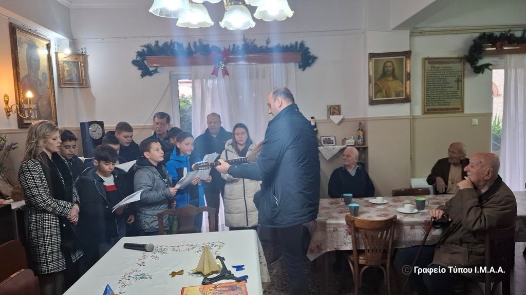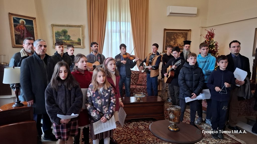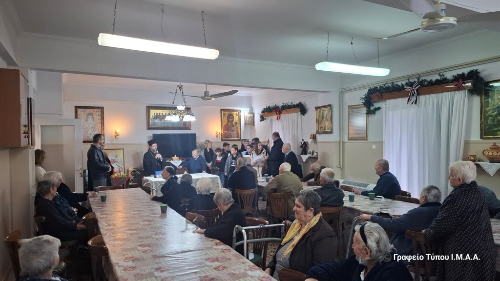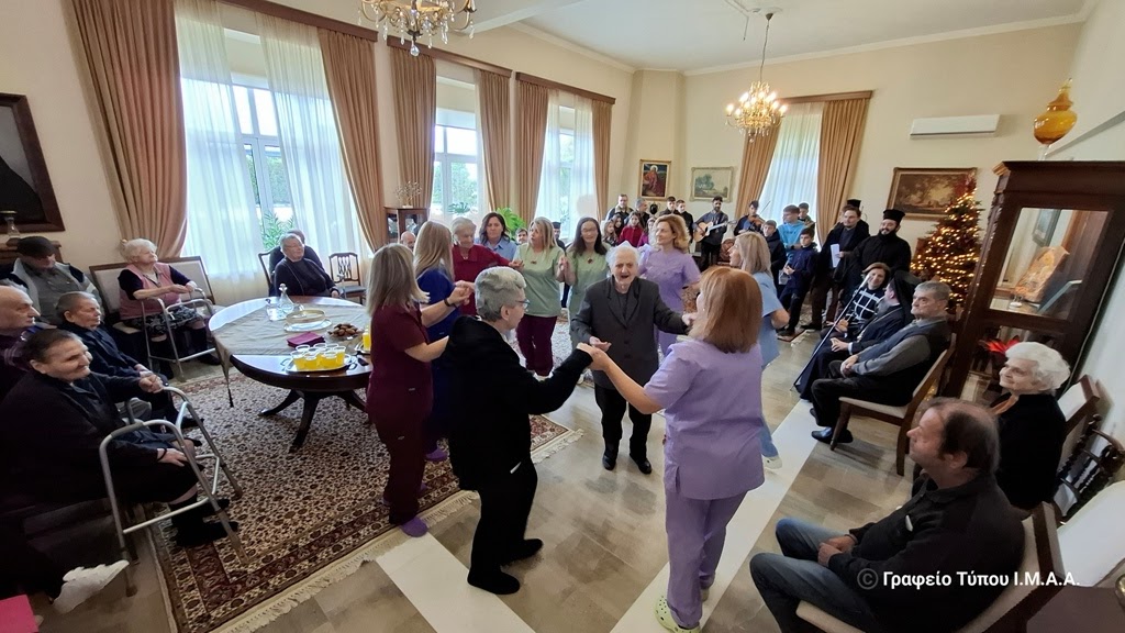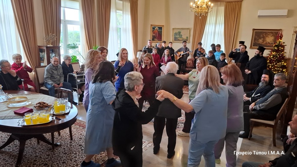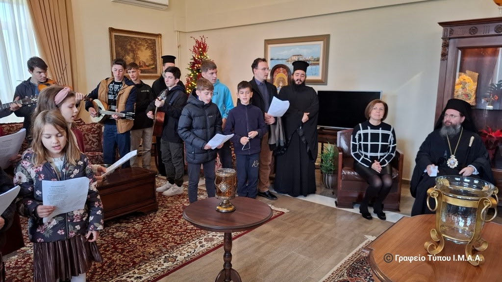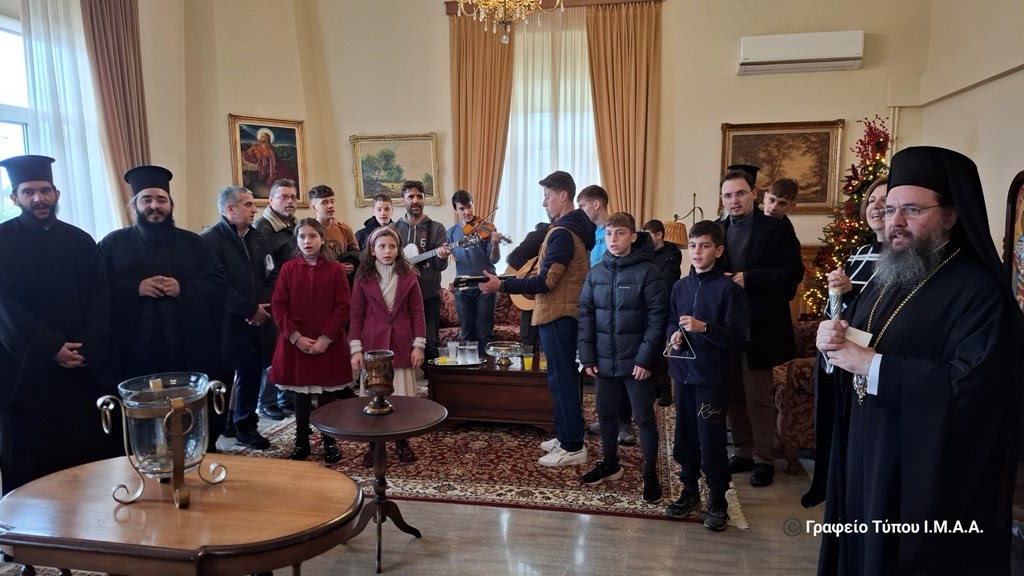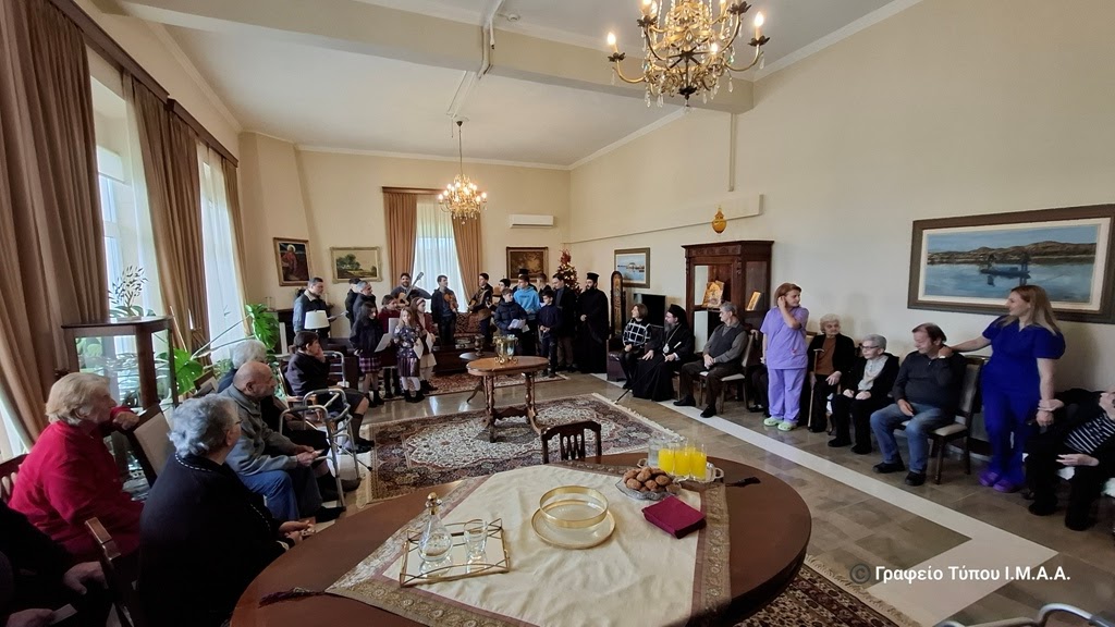 Οι νέοι της Σχολής Βυζαντινής Μουσικής έψαλλαν τα κάλαντα και τραγούδησαν παραδοσιακά τραγούδια, προσδίδοντας εορταστικό και χαρμόσυνο χαρακτήρα και ο Σεβασμιώτατος ευχήθηκε στους τροφίμους και στους εργαζομένους για τις εορτές του Αγίου Δωδεκαημέρου.