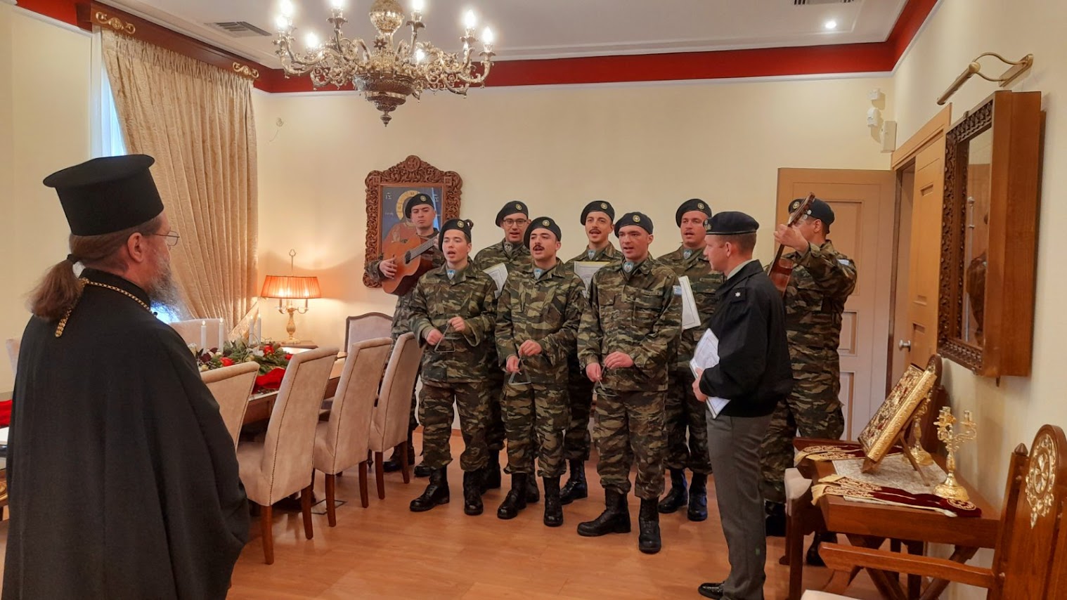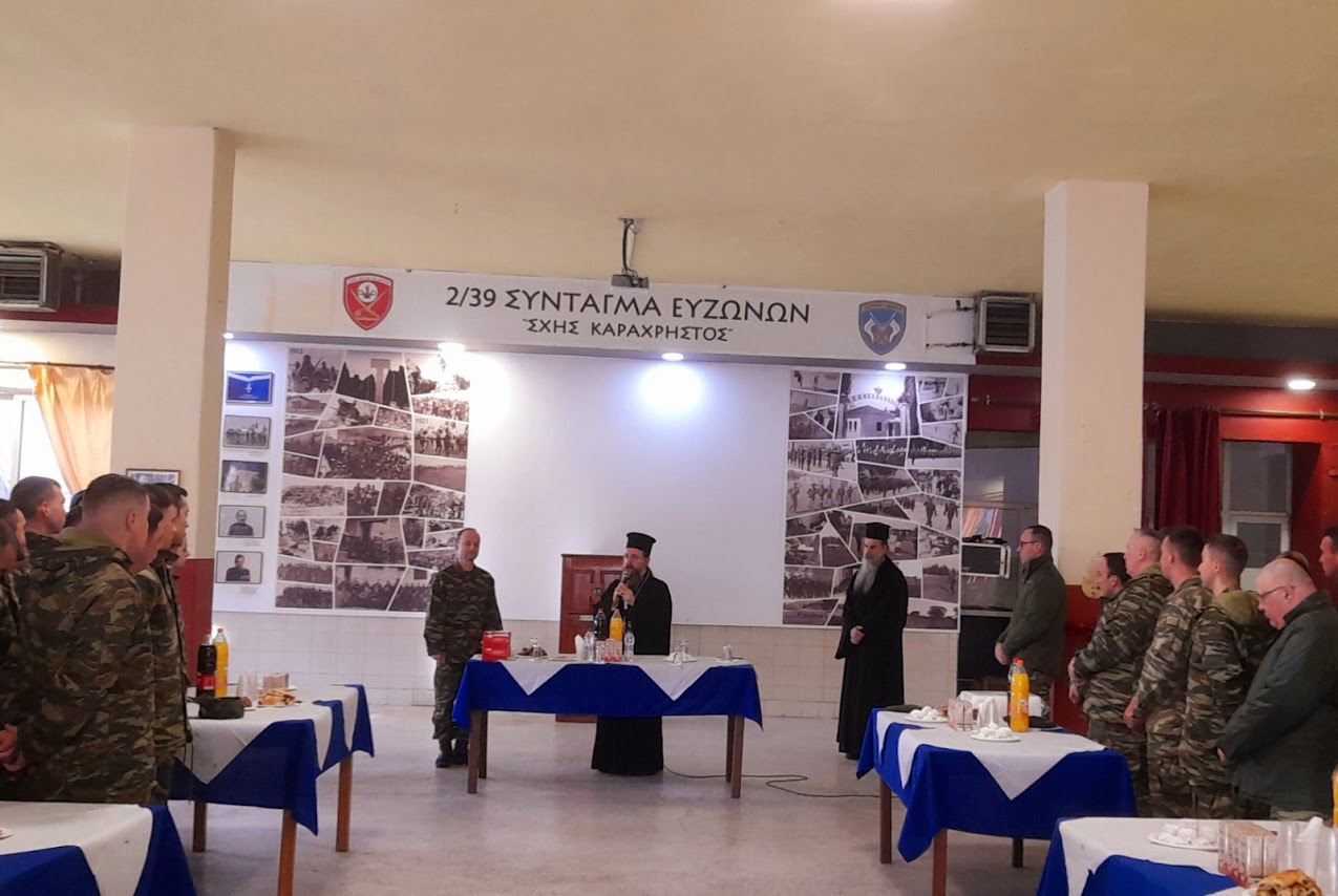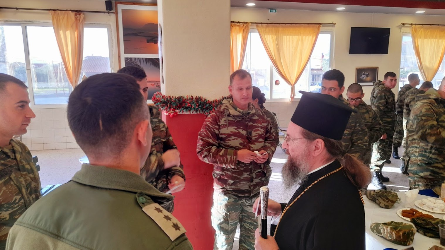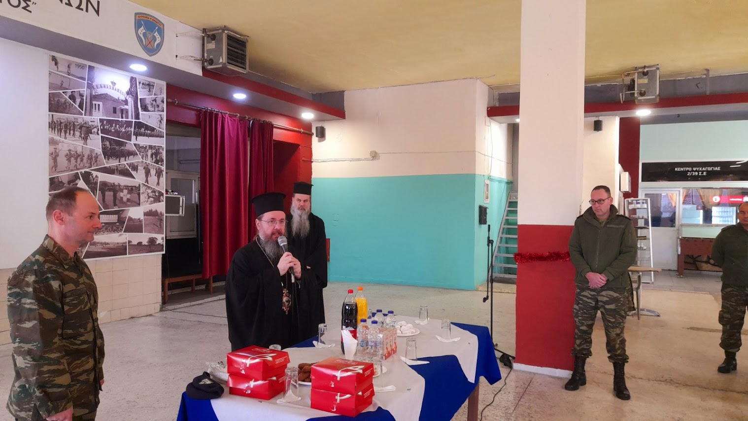 Την Τρίτη 24 Δεκεμβρίου 2024 ο Σεβασμιώτατος επισκέφθηκε το 2/39 Σύνταγμα Ευζώνων στην Ιερά Πόλη Μεσολογγίου, όπου έγινε δεκτός από τον Ανώτερο Διοικητή Φρουράς Ιεράς Πόλεως Μεσολογγίου, ΑΝΧΗ (ΠΖ) κ. Παντελεήμονα Μπερτσιά. Μίλησε στους Αξιωματικούς και τους Οπλίτες για το βαθύτερο νόημα της εορτής των Χριστουγέννων και τους ευχήθηκε για τις ημέρες του Αγίου Δωδεκαημέρου. Τέλος διένειμε χριστουγεννιάτικες ευλογίες και αντάλλαξε εορταστικές ευχές με όλους.