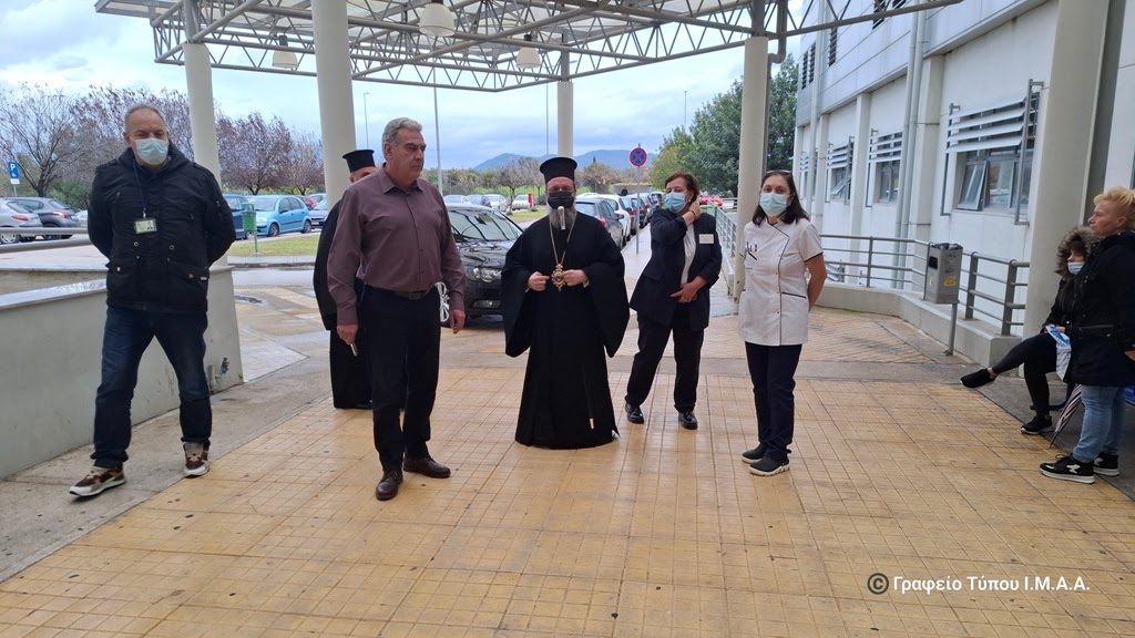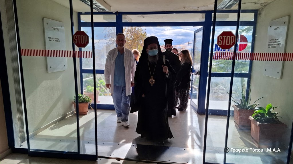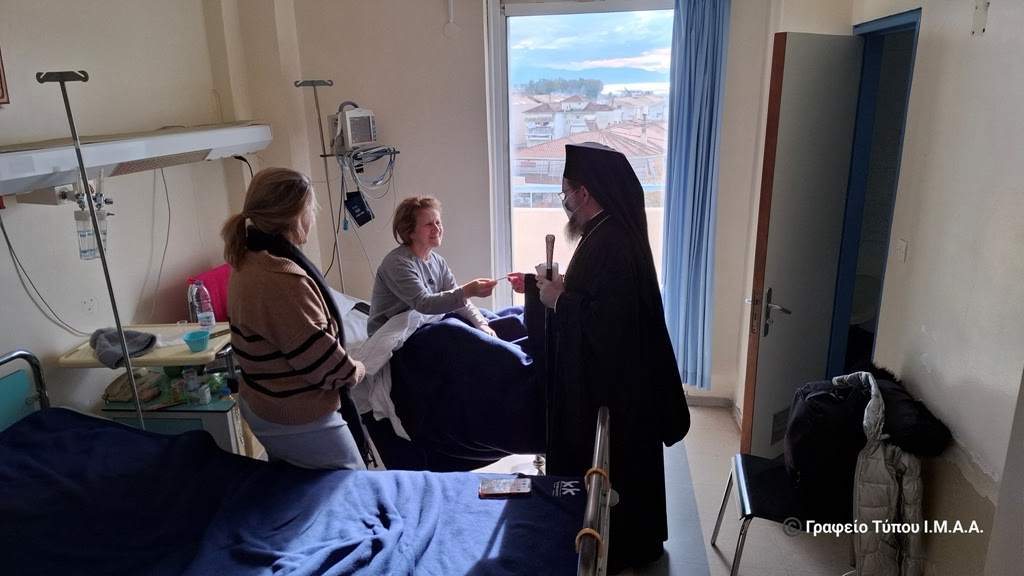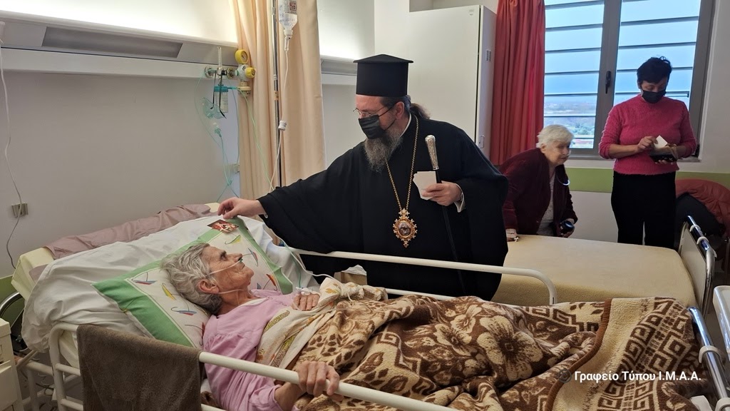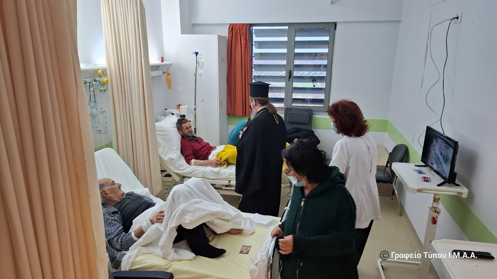 Ο Σεβασμιώτατος επισκέφθηκε τις κλινικές και ευχήθηκε στους νοσηλευομένους και τους συνοδούς τους, καθώς και στο ιατρικό και νοσηλευτικό προσωπικό.