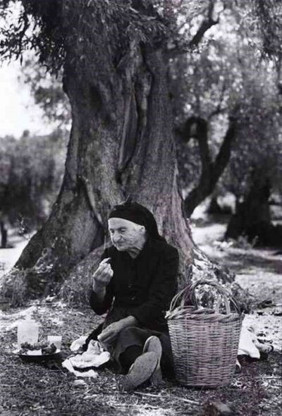 «Παλιά είχαμε λαδολιές πιο πολύ. Τώρα έχουμε καλαμών. Τότε δεν υπήρχαν πανιά κι νάυλον κι τις τίναζαν οι άντρες καταή. Και τις μάζευαν οι γυναίκες από καταή, στο χώμα. Δύσκολο, όλη μέρα να σκύβουν καταή. Πότε τσάφ(ι), πότε βρεγμένο, κοκκάλωναν οι γυναίκες. Σπάραζαν το τσάφ(ι) για να μάσνε την ελιά! Άναβαν στην άκρη φωτούλα για να ζεσταθούνε λίγο, γιατί θα ξέκοβε η καρδιά τους από το πολύ κρύο! Τι νάκανανε; Πολύ κουραστικό…