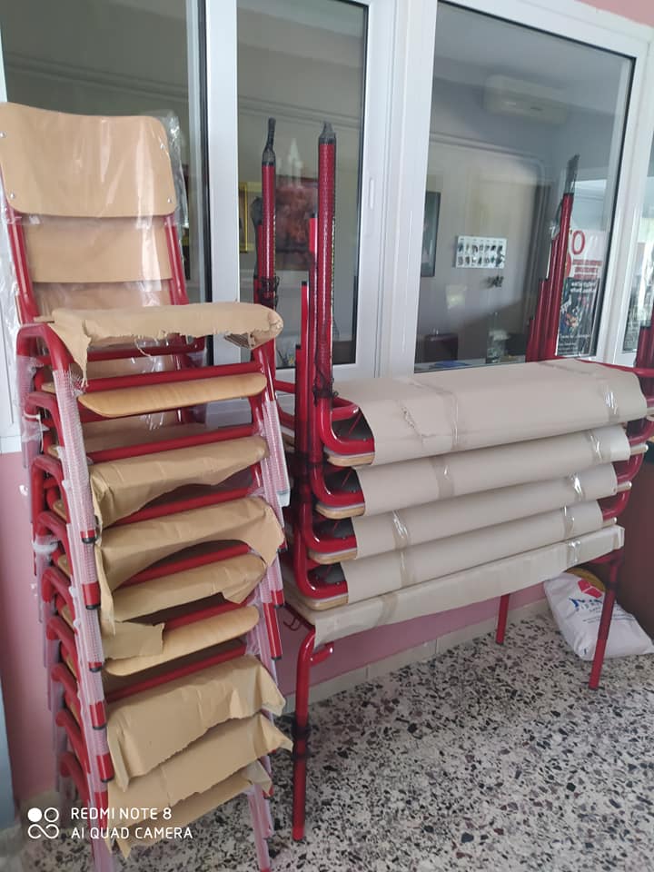 Παραλάβαμε 2 έδρες,20 θρανία και 40 καρεκλάκια για το σχολείο μας!