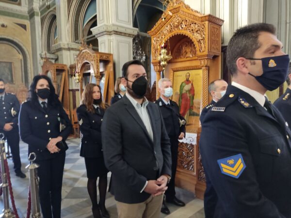 Ο Γενικός Περιφερειακός Αστυνομικός Διευθυντής Δυτικής Ελλάδας, Υποστράτηγος Απόστολος Μαρτζάκλης, υποδέχτηκε στον Ιερό Ναό Αγίου Ανδρέου Πατρών, τις Θρησκευτικές, Πολιτικές και Στρατιωτικές Αρχές του τόπου, του εκπροσώπους των Σωμάτων Ασφάλειας, τους Προέδρους και τα μέλη των εν ενεργεία και εν αποστρατεία συνδικαλιστικών ενώσεων, συλλόγων και συνδέσμων αστυνομικών και πολιτικών υπαλλήλων, καθώς και τους Διευθυντές, τους Διοικητές και το προσωπικό Αστυνομικών Υπηρεσιών.