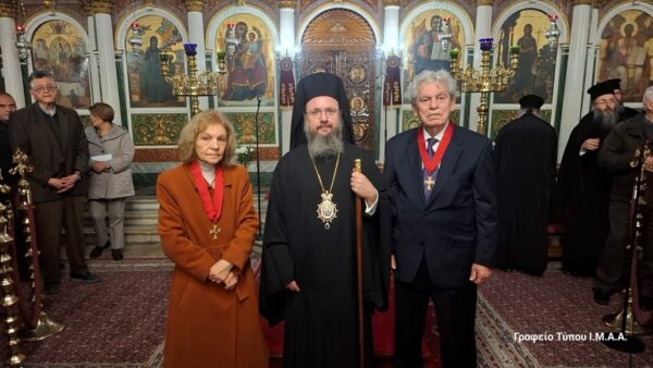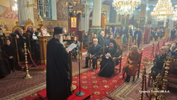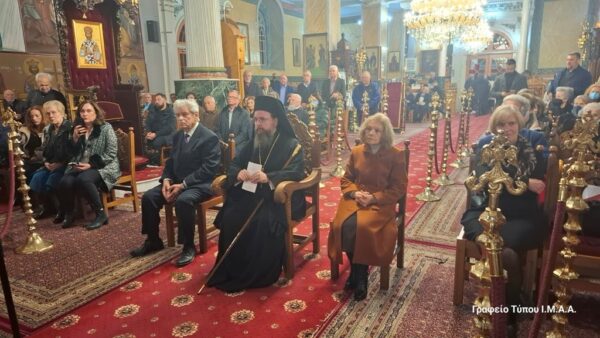 Αμέσως μετά, εντός του Ιερού Ναού, πραγματοποιήθηκε τιμητική εκδήλωση για δύο καταξιωμένους συνταξιούχους εκπαιδευτικούς της Πρωτοβάθμιας και της Δευτεροβάθμιας Εκπαίδευσης, τον κ. Διονύσιο Μπερερή και την κα Όλγα Αδρασκέλα – Πατογιάννη αντίστοιχα.