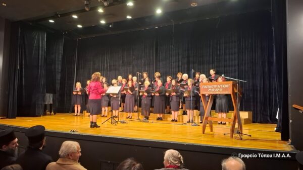 Στο δεύτερο μέρος της εκδήλωσης η Γυναικεία Βυζαντινή Χορωδία του Ιερού Ναού Αγίου Δημητρίου Αγρινίου, υπό την διεύθυνση της Μουσικού κας Γεωργίας Βουλδή, απέδωσε εκκλησιαστικούς ύμνους και άσματα της εορτής των Τριών Ιεραρχών, κάνοντας την πρώτη της εμφάνιση σε εκδήλωση της Ιεράς Μητροπόλεως και αποσπώντας το θερμό χειροκρότημα των παρευρισκομένων.