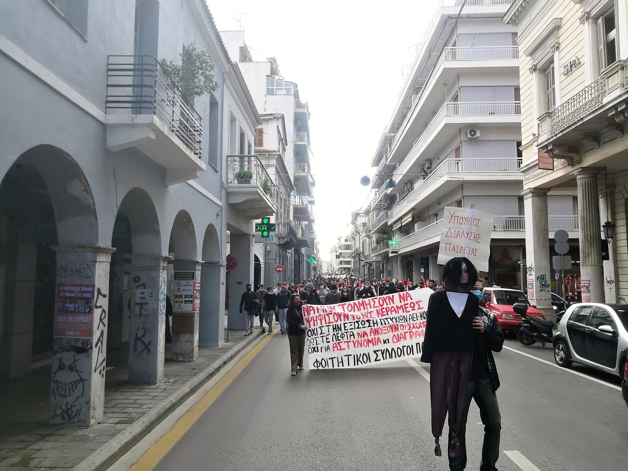 “Σήμερα (σ.σ. χθες), σε όλη την Ελλάδα αντικρίσαμε μαζικές αντιδράσεις των φοιτητών, εκπαιδευτικών, μαθητών και ευρύτερα της κοινωνίας, ενάντια στο εκπαιδευτικό νομοσχέδιο Κεραμέως – Χρυσοχοΐδη. Πανελλαδικά, από την Πάτρα μέχρι την Αθήνα και τα Χανιά, χιλιάδες κόσμος κατέβηκε στους «δρόμους της φωτιάς» για να παλέψει ενάντια στην διάλυση της δημόσιας υγείας και εκπαίδευσης, ενάντια στον αυταρχισμό, την καταστολή και την περιστολή των ελευθεριών μας. Με πρωταγωνιστές τους ίδιους τους φοιτητές ακολούθησε όλη η κοινωνία στην κλιμάκωση του αγώνα μας. Καταγγέλλουμε τα απροκάλυπτα περιστατικά αστυνομικής βίας που επικράτησαν στις διαδηλώσεις της Αθήνας και της Θεσσαλονίκης. Δε μας τρομοκρατούν! Μαθητές, εκπαιδευτικοί, εργατικά σωματεία και φορείς του κινήματος κατέβηκαν στον δρόμο απαιτώντας μια καλύτερη ζωή ενάντια στην δυστοπία που μας επιβάλλουν.
