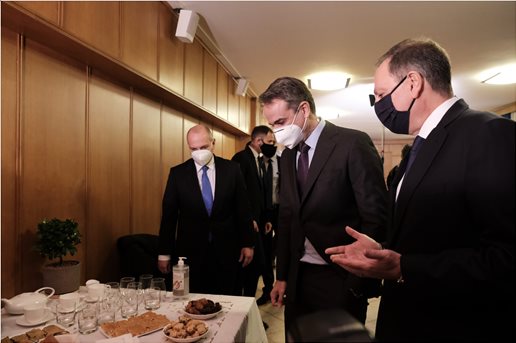 Μιας και ήταν δέκα το πρωί, στην αίθουσα συνεδριάσεων περίμενε τον πρωθυπουργό ένα στρωμένο τραπέζι, με όλα τα καλούδια της ελληνικής γης : Φρεσκοστυμμένη πορτοκαλάδα, χυμό ρόδι, τσάϊ του βουνού, γραβιέρα με ζυμωτό ψωμί, χειροποίητες μαρμελάδες, χορτόπιτα με σπιτικό φύλλο, ζυμαρόπιττα, κρητικά καλτσούνια, καρύδια με μέλι, ελιές και φρέσκα φρούτα. O υπουργός πρόσφερε στον πρωθυπουργό γραβιέρα Αμφιλοχίας, ένα από τα πολλά ξακουστά προϊόντα της ιδιαίτερης πατρίδας του, της Αιτωλοακαρνανίας. Και παρ ό,τι λάτρης της κρητικής, ο Πρωθυπουργός την απόλαυσε δεόντως.