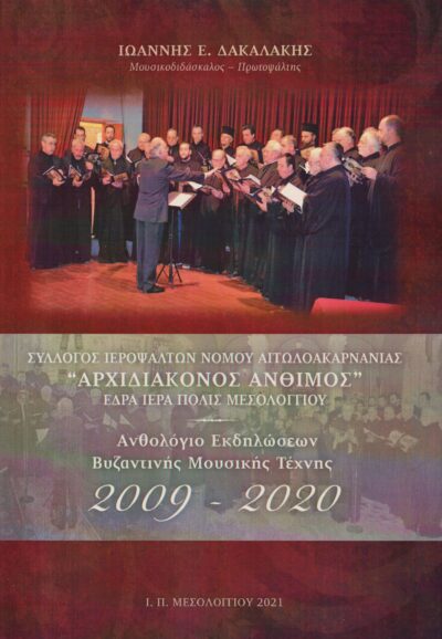 Κυκλοφόρησε, πριν λίγες ημέρες, το νέο βιβλίο τού Μουσικοδιδασκάλου και Πρωτοψάλτου, Γιάννη Δακαλάκη με τίτλο «Ανθολόγιο Εκδηλώσεων Βυζαντινής Μουσικής Τέχνης τού Συλλόγου Ιεροψαλτών Ν. Αιτωλοακαρνανίας “ΑΡΧΙΔΙΑΚΟΝΟΣ ΑΝΘΙΜΟΣ”, με έδρα το Μεσολόγγι».