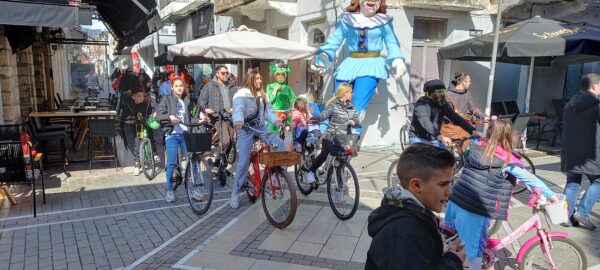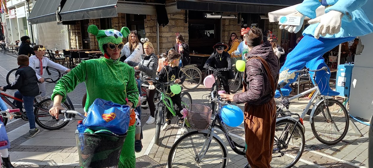 Γιορτινό κλίμα στους δρόμους του Μεσολογγίου δημιούργησαν μικροί και μεγάλοι, με τις αποκριάτικες στολές του κάνοντας μια “κεφάτη” ποδηλατοβόλτα, υπό τους ήχους latin μουσικής.