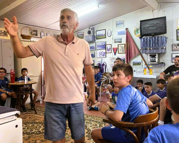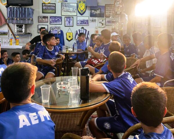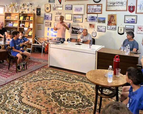 Μια όμορφη και γεμάτη συμβολισμούς επίσκεψη πραγματοποίησαν πρόσφατα οι μικροί ποδοσφαιριστές της Ακαδημίας της Αθλητικής Ένωσης Μεσολογγίου στον χώρο που στεγάζεται ο Σύνδεσμος των Παλαιμάχων της ΑΕΜ.