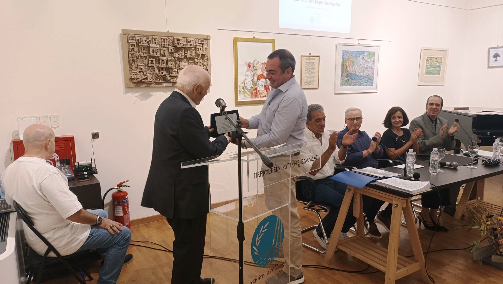 Η εκδήλωση ολοκληρώθηκε με την απονομή τιμητικής πλακέτας από τον πρόεδρο του Συλλόγου, εκ μέρους της Διοίκησης, ως ένδειξη αναγνώρισης για τη συνολική προσφορά του Λάκη Χαντζή στην πολιτιστική ζωή του Μεσολογγίου.