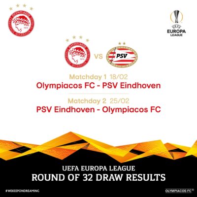 Την Αϊντχόφεν θα αντιμετωπίσει ο Ολυμπιακός στην φάση των “32” του Europa Laegue καθώς πριν από λίγο ολοκληρώθηκε η κλήρωση.