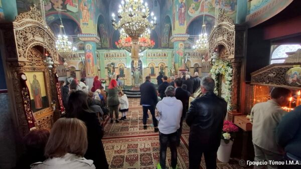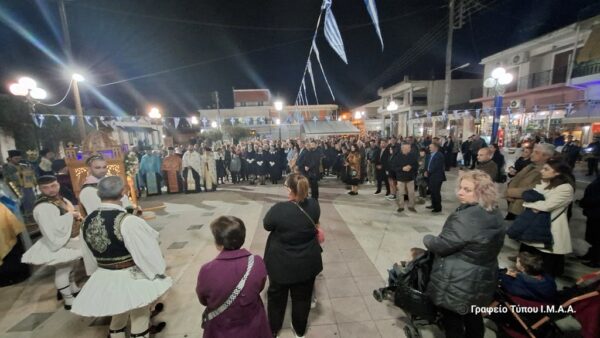 Στην κεντρική πλατεία τελέσθηκε δέηση και ο Σεβασμιώτατος μίλησε επίκαιρα στους πιστούς που συμμετείχαν στην ιερά λιτανεία.