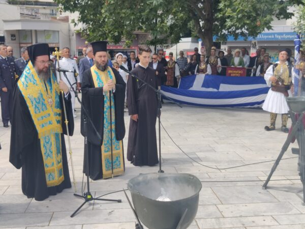 Ακολούθησε επιμνημόσυνη δέηση και  κατάθεση στεφάνων στο Μνημείο των Πεσόντων στην Πλατεία Μαρίας Δημάδη.