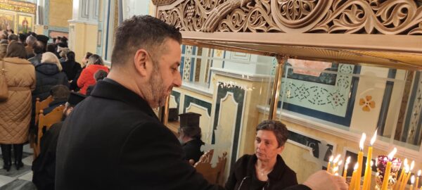 Πλήθος πιστών έχει κατακλύσει τον Μητροπολιτικό Ναό, συμμετέχοντας με ευλάβεια στην ιστορική αυτή στιγμή για την τοπική Εκκλησία και την πόλη του Μεσολογγίου.