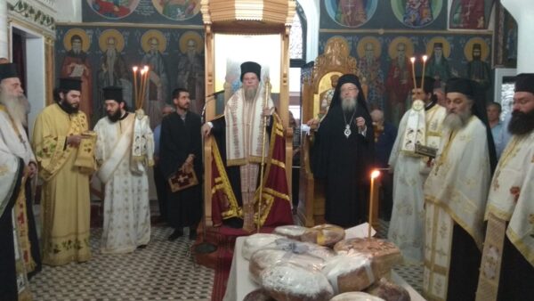 Στην ακολουθία του πανηγυρικού αρχιερατικού Εσπερινού, στο Καθολικό της Μονής, χοροστάτησε ο Θεοφιλέστατος Επίσκοπος Ευκαρπίας κ. Ιερόθεος και συγχοροστάτησε ο Σεβασμιώτατος Ποιμενάρχης μας, Μητροπολίτης Αιτωλίας και Ακαρνανίας κ. Κοσμάς.