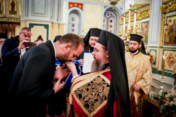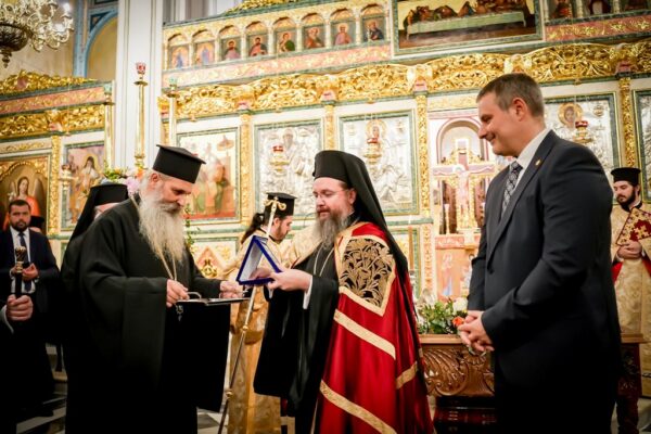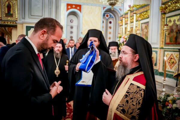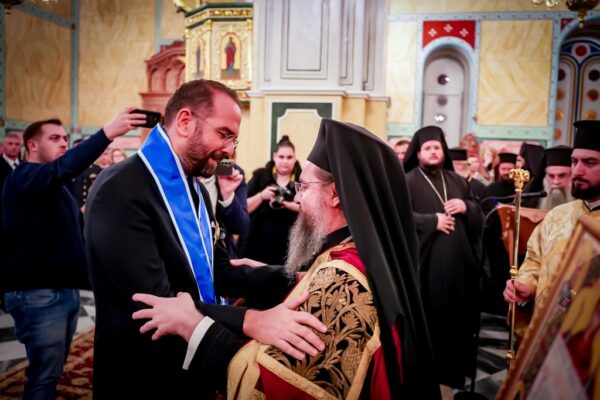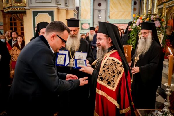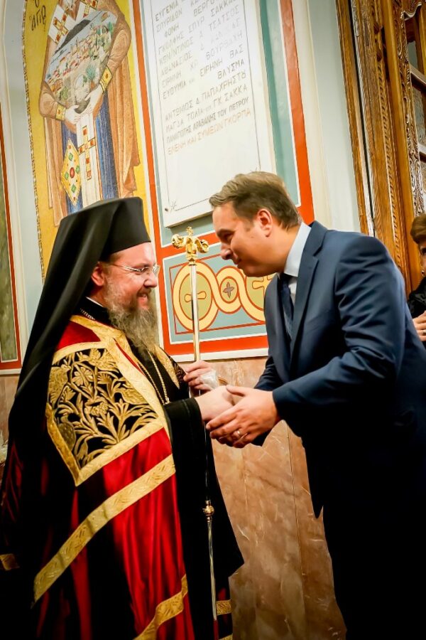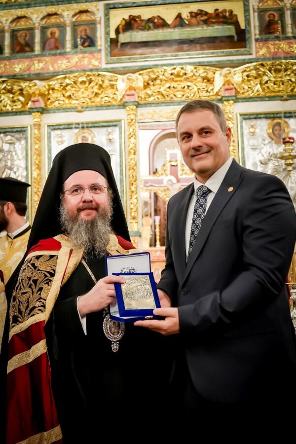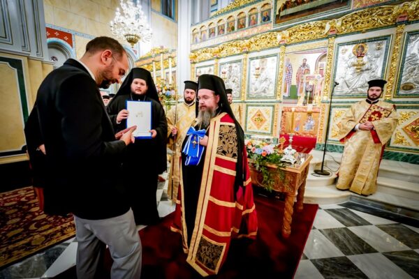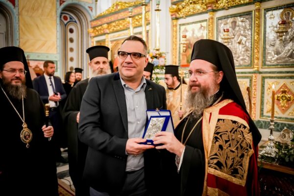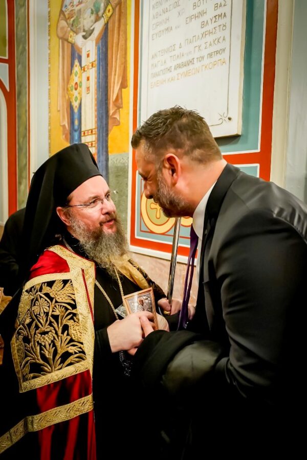 Ο Σεβασμιώτατος Μητροπολίτης Αιτωλίας και Ακαρνανίας αμέσως μετά, απένειμε την Ανώτατη Τιμητική Διάκριση της Ιεράς Μητροπόλεως Αιτωλίας και Ακαρνανίας, ήτοι τον Χρυσούν Σταυρόν μετά Μεταλλίου, στον Εντιμώτατο κ. Νεκτάριο Φαρμάκη, Περιφερειάρχη Δυτικής Ελλάδας για την μεγάλη και πολλαπλή συμβολή του στην ανακαίνιση του Ιερού Μητροπολιτικού Ναού.