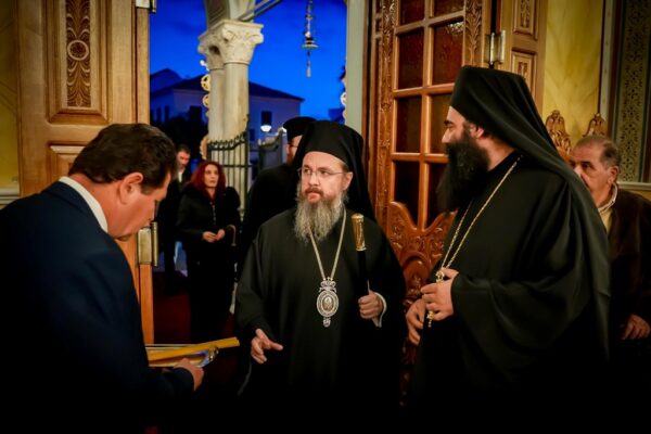 Όμως, υπάρχει και ένα δεύτερο πρόσωπο που στέκεται δίπλα μας, αφουγκράζεται την επισκοπική μας αγωνία και με την πίστη που διαθέτει, την οργανωτικότητα που τον διακρίνει και την πιστότητα στην διακονία που του έχει αναθέσει ο λαός του Θεού, επιχορήγησε με ένα πολύ μεγάλο ποσό που ξεπερνά τις 800.000 € το κύριο μέρος των ανακαινιστικών έργων του Ιερού μας Μητροπολιτικού Ναού. Είναι ο κ. Νεκτάριος Φαρμάκης. Και δεν είναι μόνο αυτό το έργο, αδελφοί μου. Ήδη υλοποιείται, όπως γνωρίζετε, η ανακαίνιση του ιστορικού μας Επισκοπείου, αλλά και της Βυζαντινής Ιεράς Μονής της Παναγίας της Μυρτιάς.