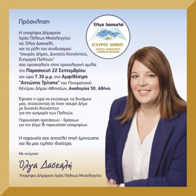 Υποψήφια Δήμαρχος Ιεράς Πόλεως Μεσολογγίου
