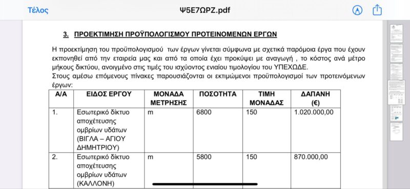 Για την αποκατάσταση της αλήθειας όμως, με έκπληξη είδαμε ότι στην συγκεκριμένη απόφαση της οικονομικής επιτροπής, το θέμα που συζητήθηκε ήταν η τροποποίηση μελέτης (την οποία είχαν συντάξει υπηρεσιακοί παράγοντες στην διάρκεια της θητείας μας) και η αδυναμία εκτέλεσης αυτής (υδραυλική μελέτη) από την υπηρεσία του Δήμου. Ο συνδυασμός μας συμμετείχε με δύο δημοτικούς συμβούλους, όπου και ψήφισαν την ανάθεση της μελέτης, λόγω αδυναμίας εκτέλεσης της!