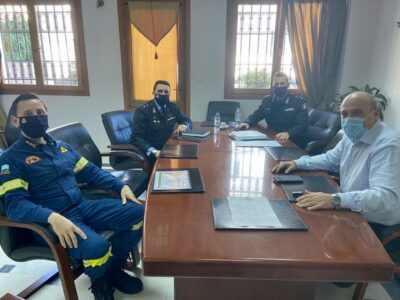 Σύσκεψη με τον Περιφερειακό Διοικητή Πυροσβεστικών Υπηρεσιών Δυτικής Ελλάδας, Αντιπύραρχο κ. Νίκο Ρουμελιώτη, το Διοικητή της Πυροσβεστικής Υπηρεσίας Ναυπάκτου Επιπυραγό κ. Κωνσταντίνο Μπέκο και τον Υποδιοικητή Πυροσβεστικής Υπηρεσίας Ναυπάκτου κ. Αθανάσιο Χριστοβασίλη, πραγματοποίησε ο Δήμαρχος κ. Βασίλης Γκίζας στο Δημαρχείο Ναυπακτίας.