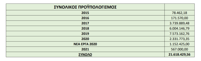 Πίνακας με τις ανά έτος υπολειπόμενες χρηματοδοτήσεις έργων του δήμου Μεσολογγίου από τη ΔΙΑΎΓΕΙΑ (ΔΕΊΤΕ ΕΔΏ ΤΗΝ ΑΠΌΦΑΣΗ ΓΙΑ ΤΟ ΤΕΧΝΙΚΌ ΠΡΌΓΡΑΜΜΑ 2021)